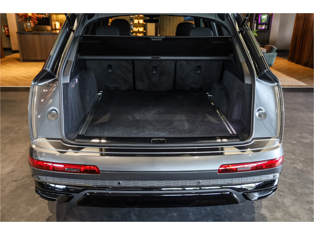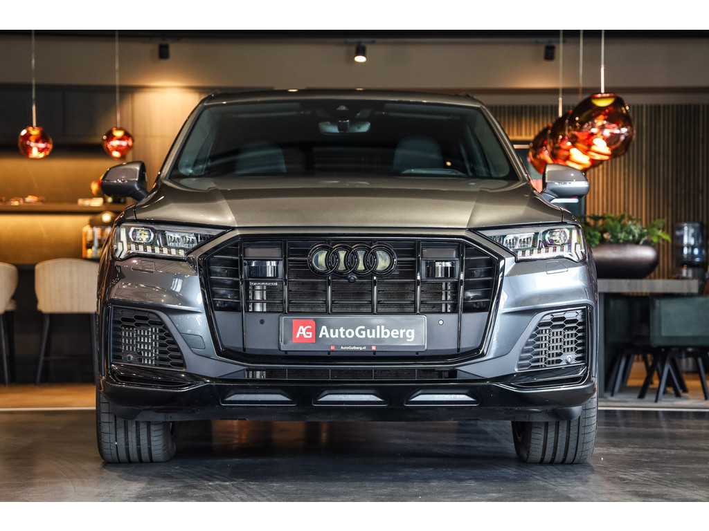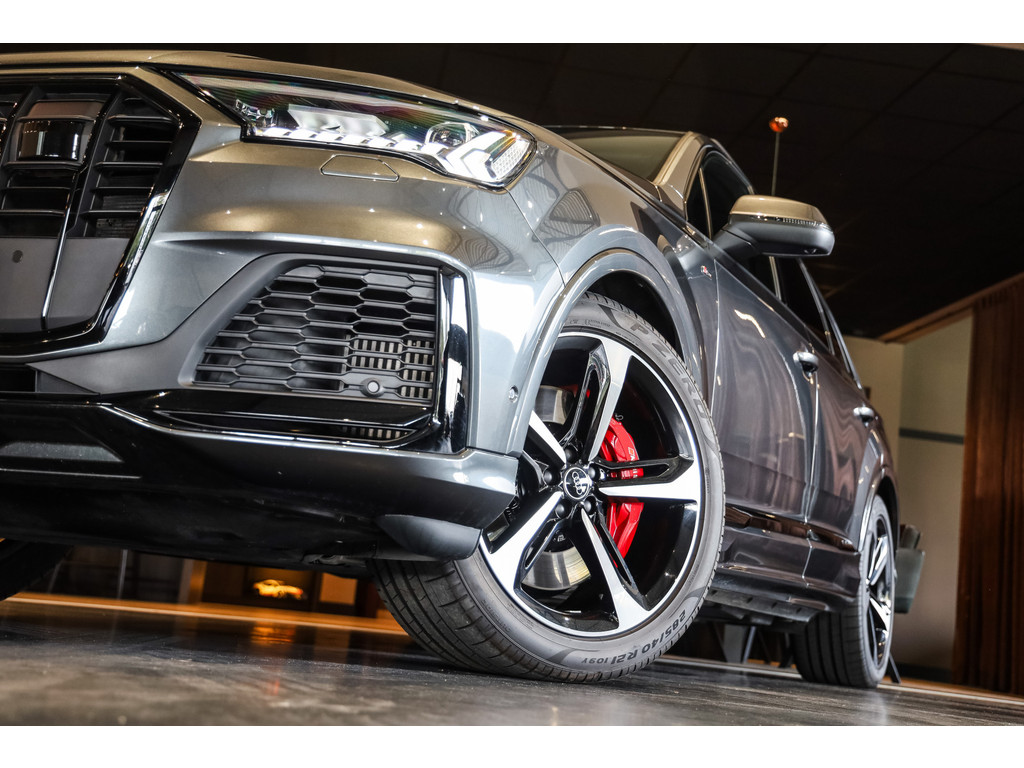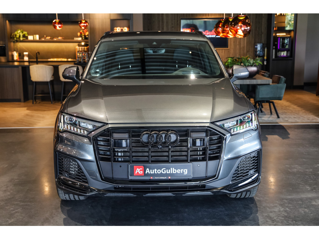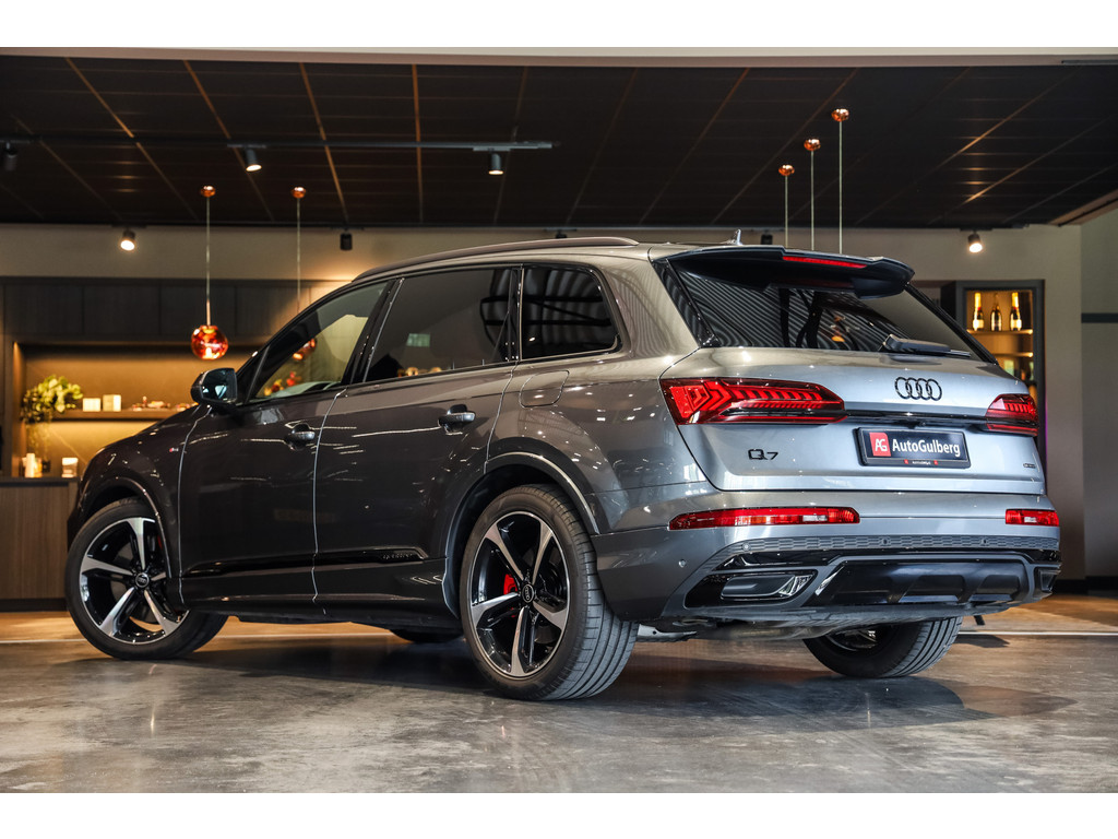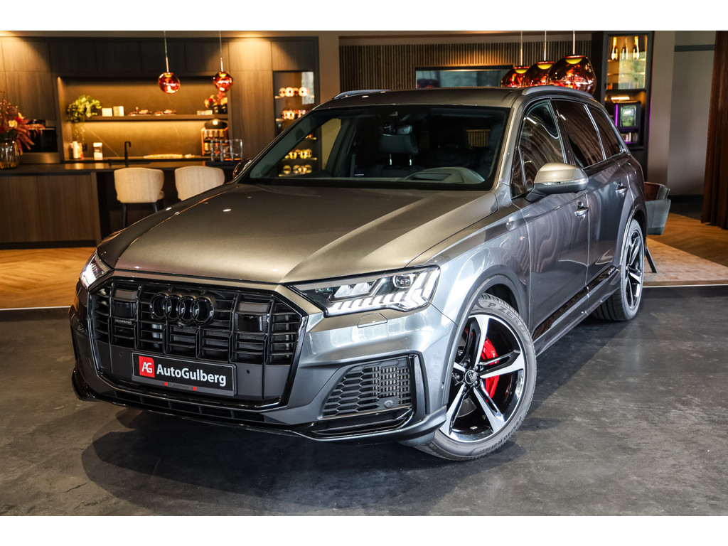 Hele mooie Audi Q7 55 TFSI e Quattro Black Optic in de kleur Daytona grijs metallic met zwart Leder / Alcantara.