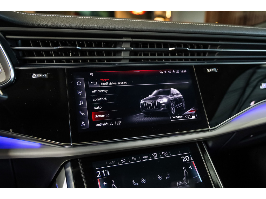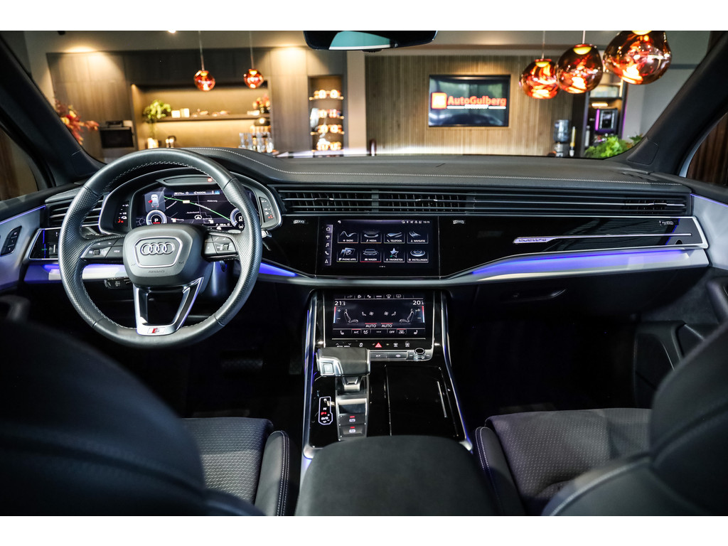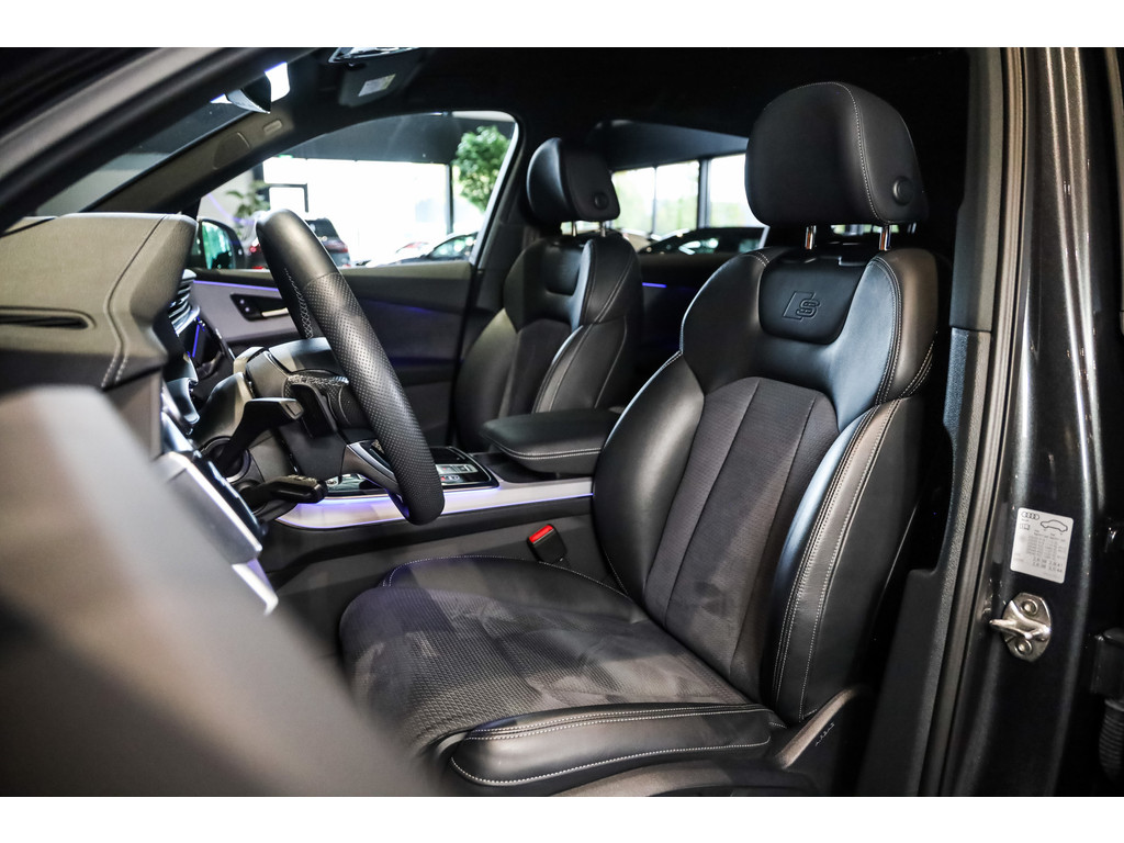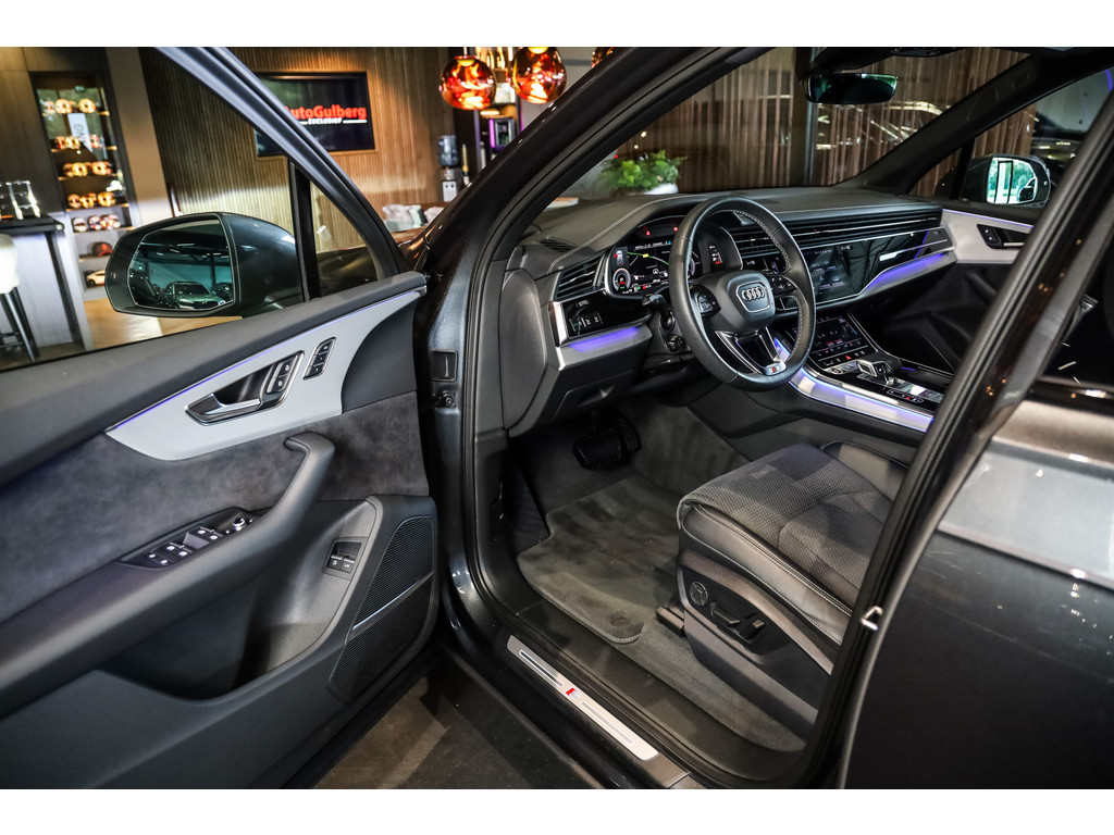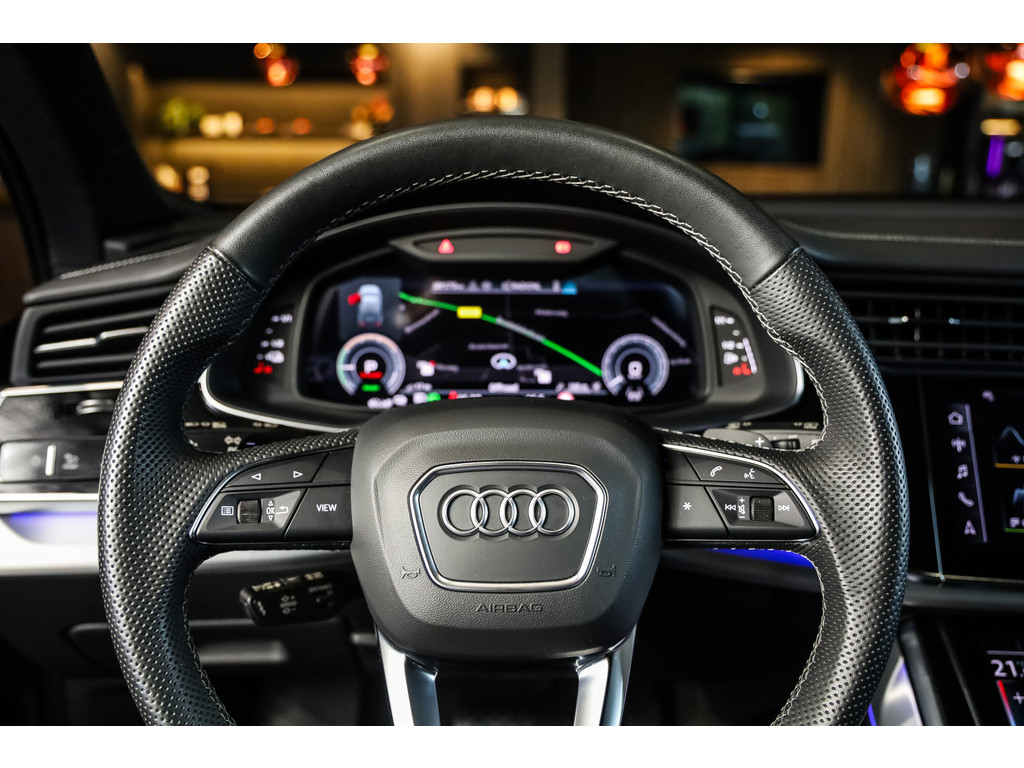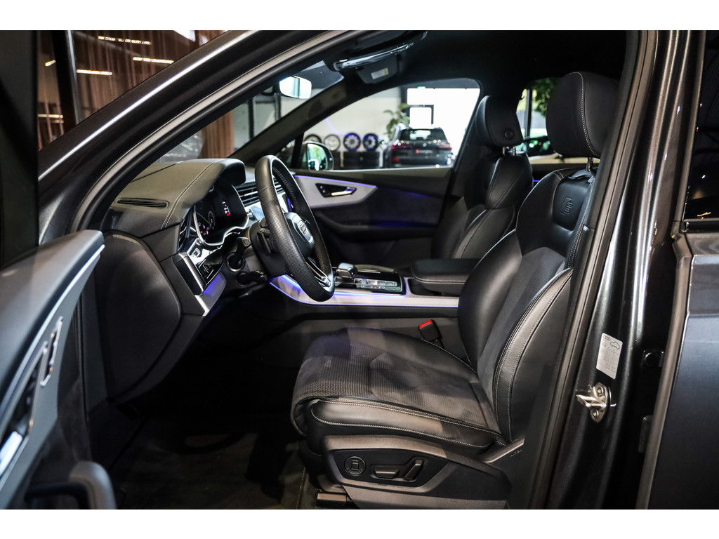 Hele mooie Audi Q7 55 TFSI e Quattro Black Optic in de kleur Daytona grijs metallic met zwart Leder / Alcantara.