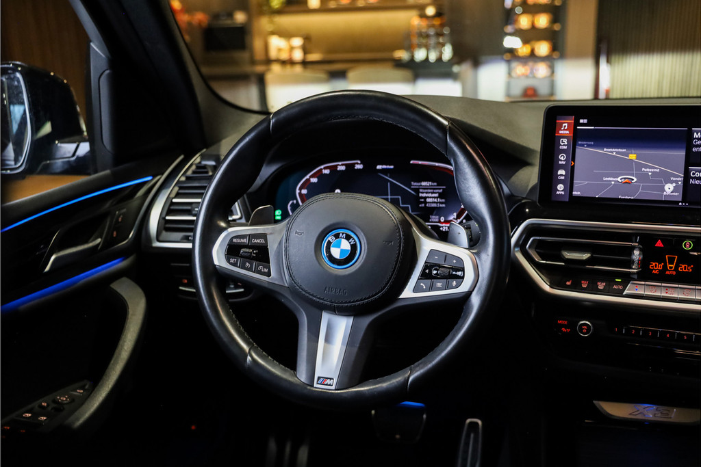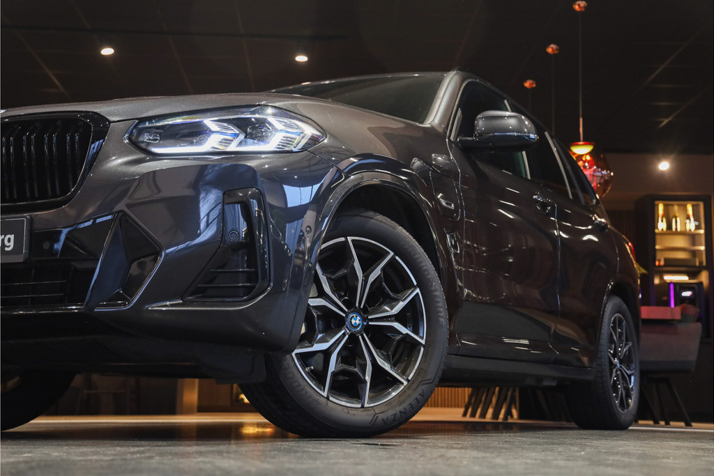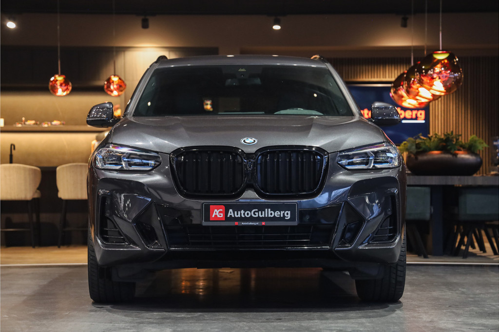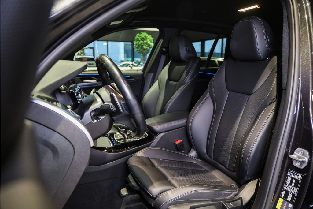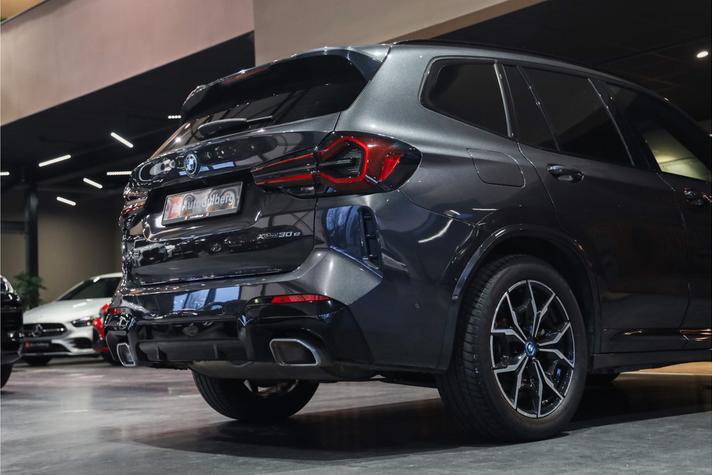 BMW X3 30e M-Sportpakket in de mooie kleur combinatie Sophistograu met zwart leder uitgevoerd in Black Optic accenten.