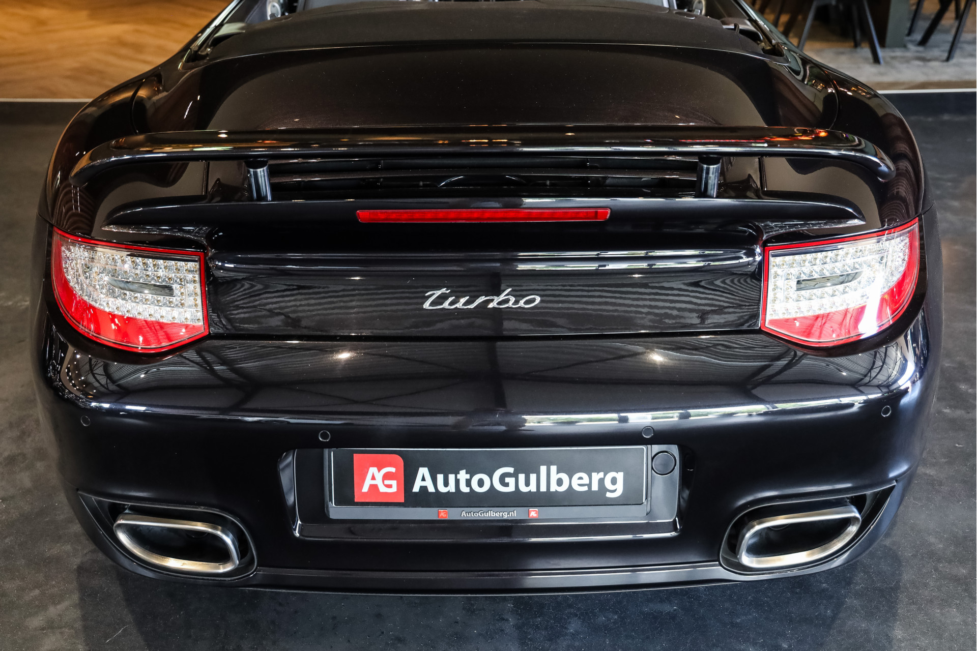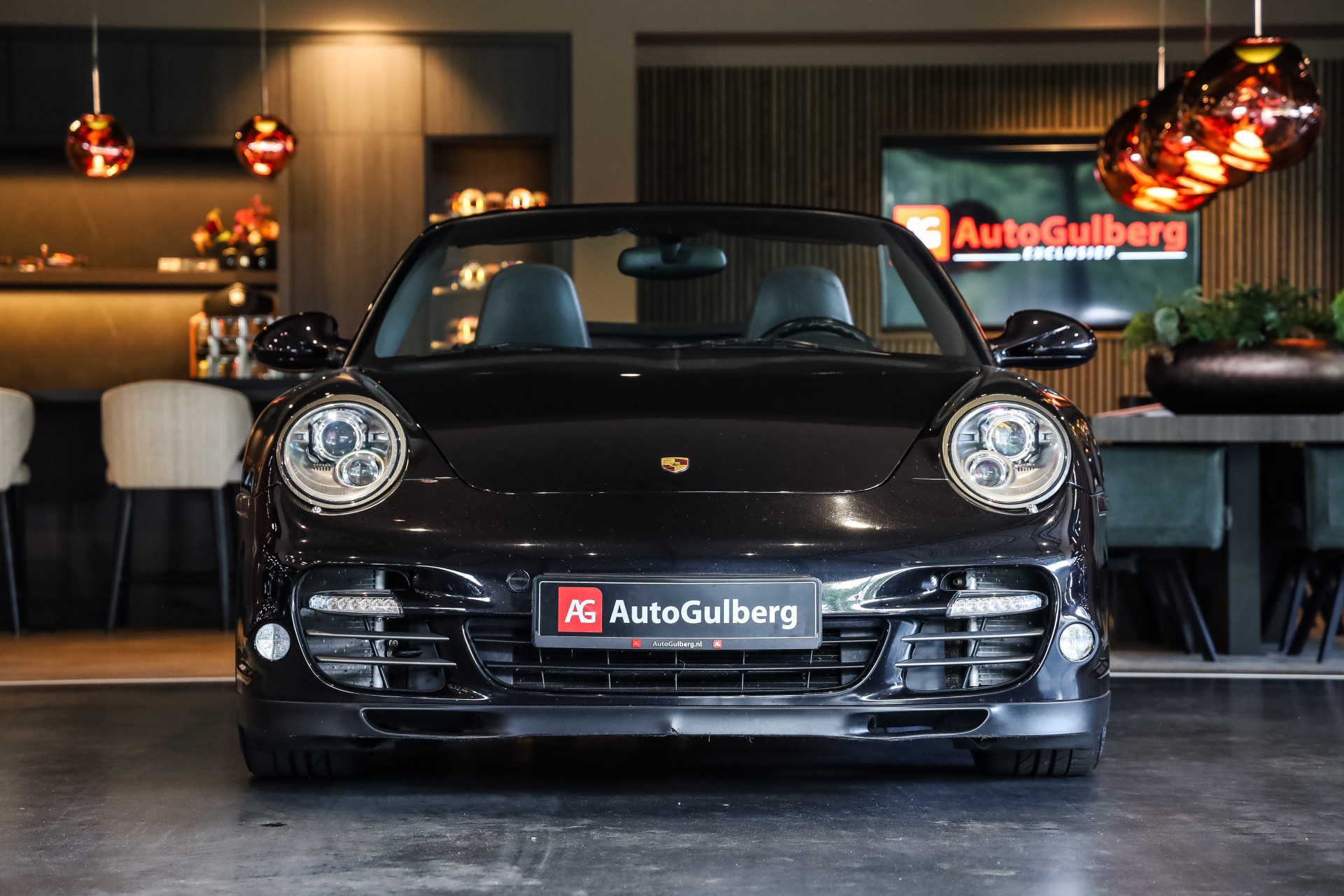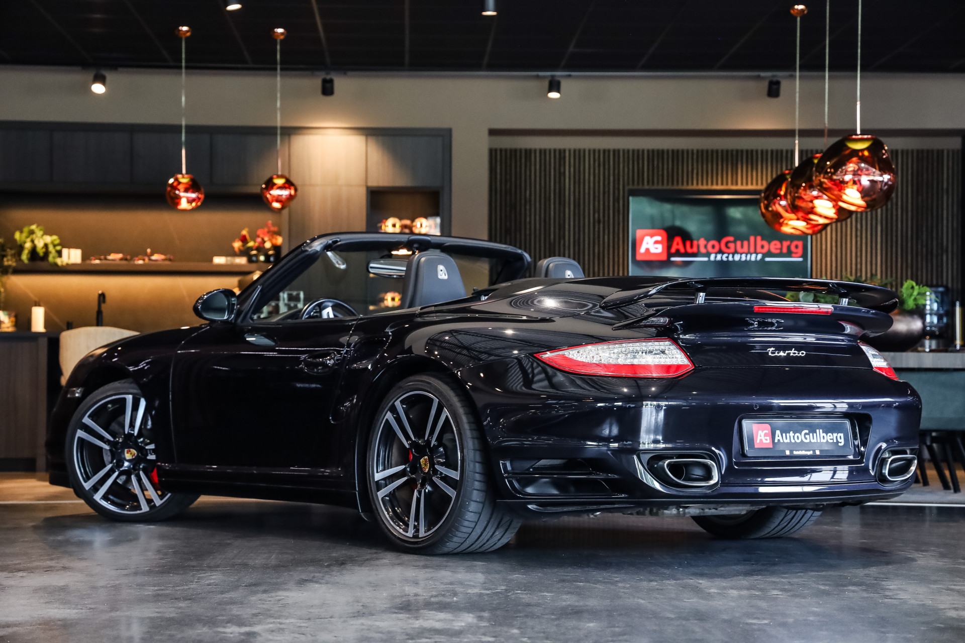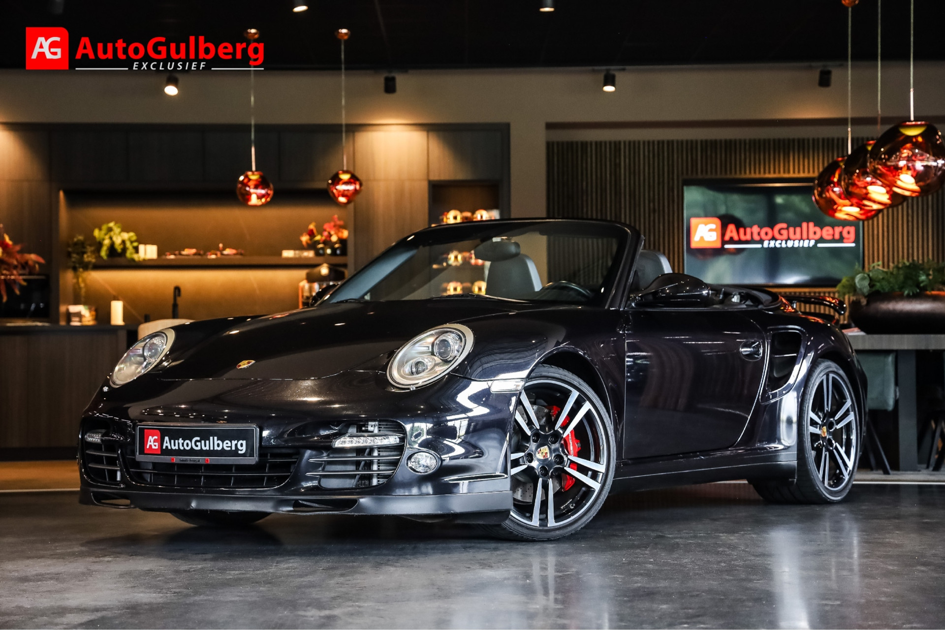 Uitzonderlijk mooie Porsche 997 Turbo in Basalt zwart Metallic met zwart Nappa leder en volledige historie in showroomstaat.