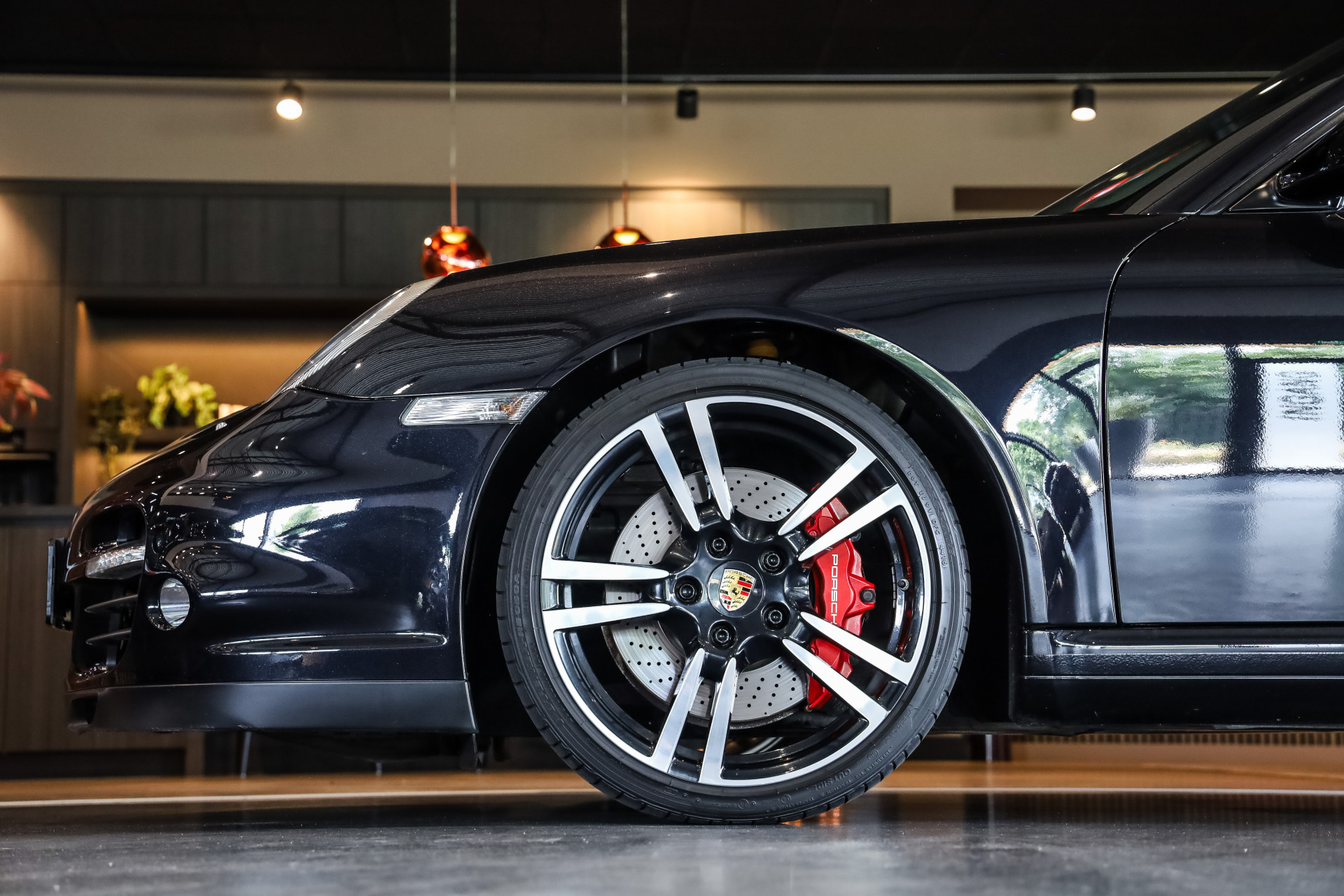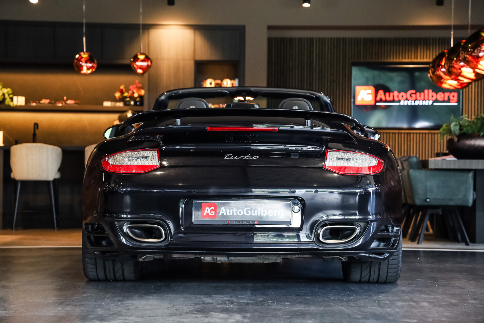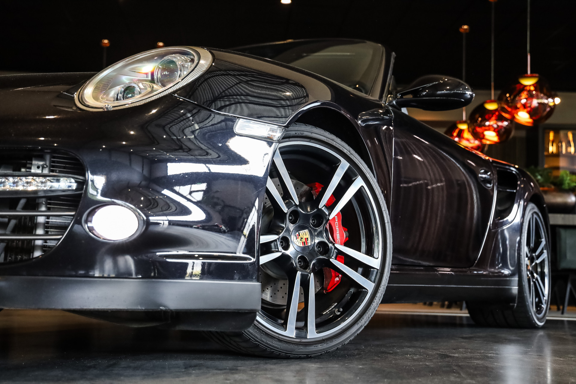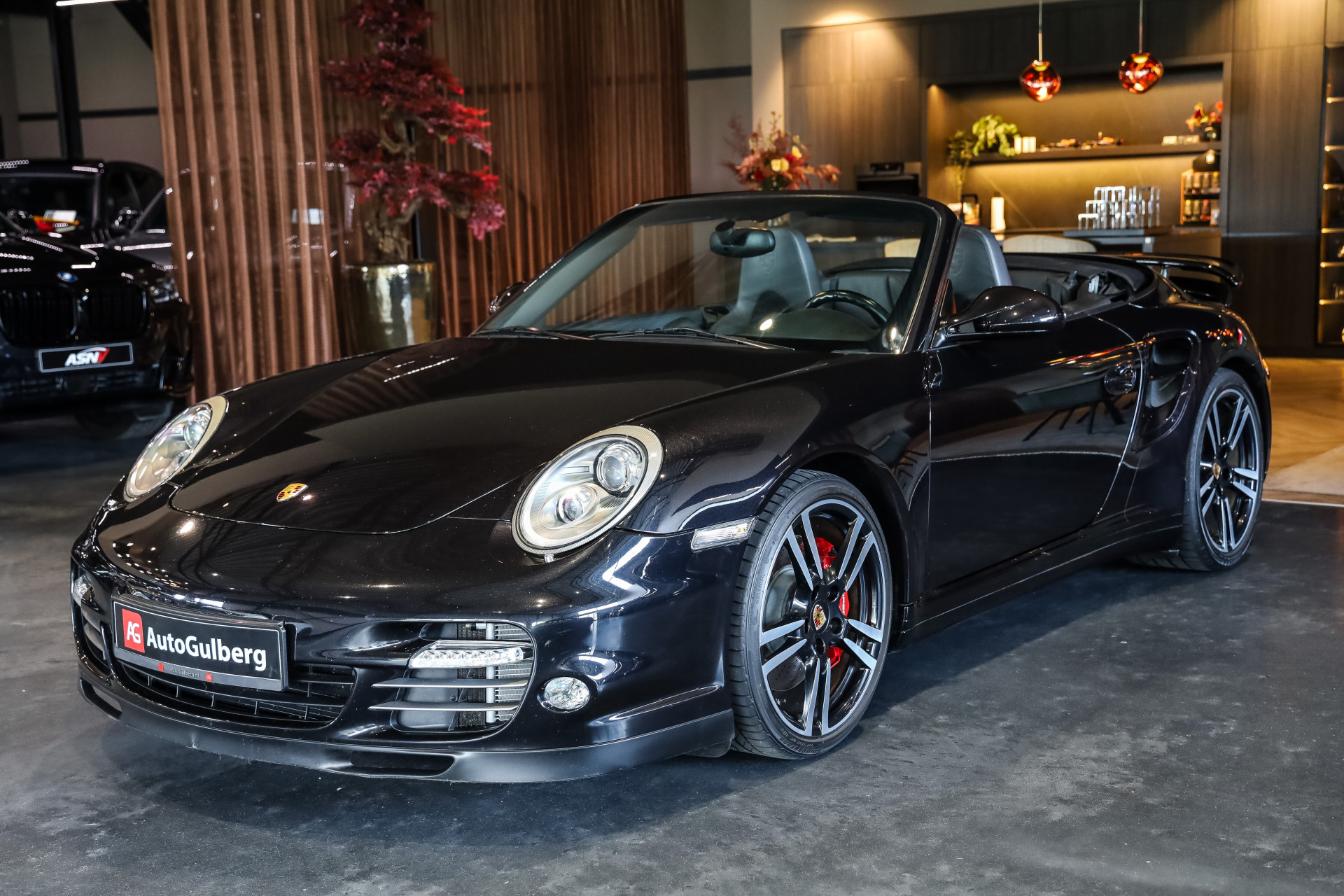 Uitzonderlijk mooie Porsche 997 Turbo in Basalt zwart Metallic met zwart Nappa leder en volledige historie in showroomstaat.