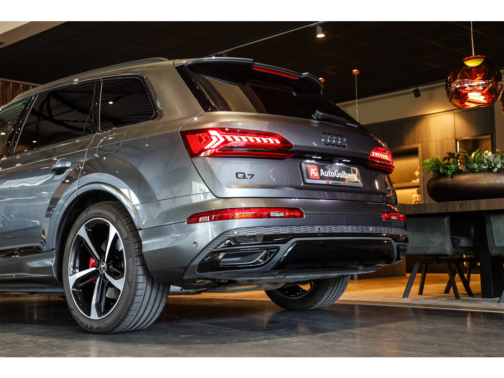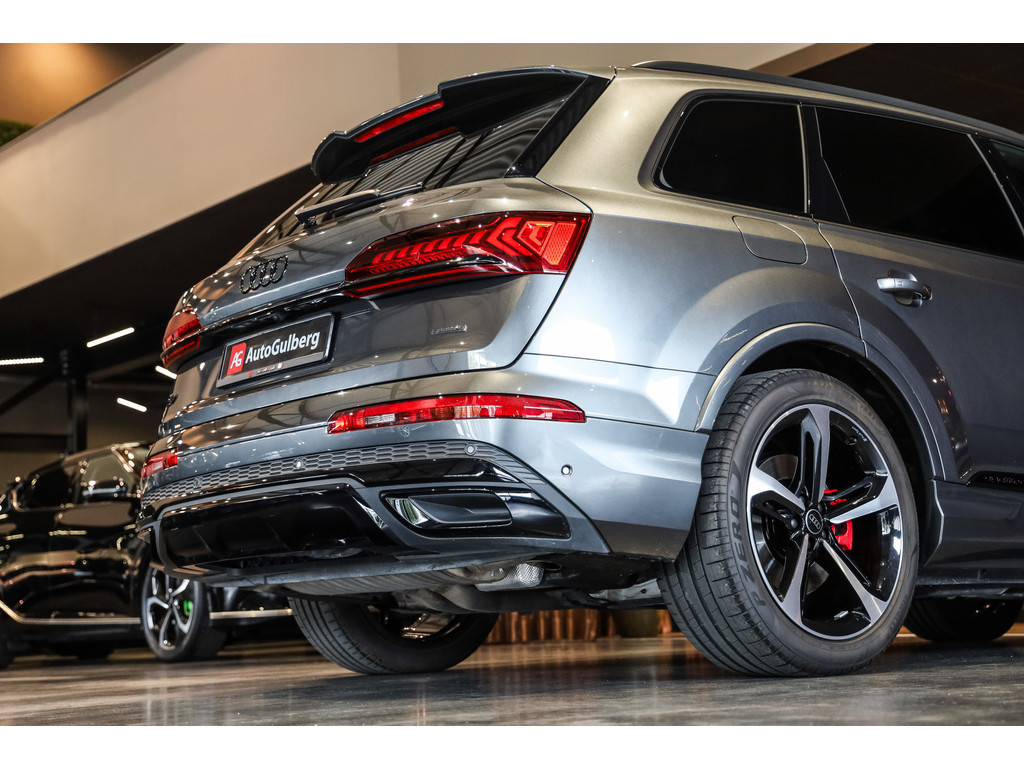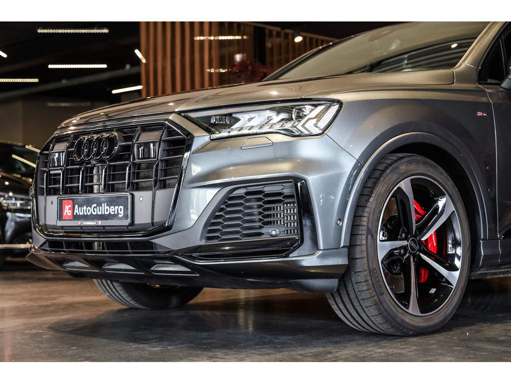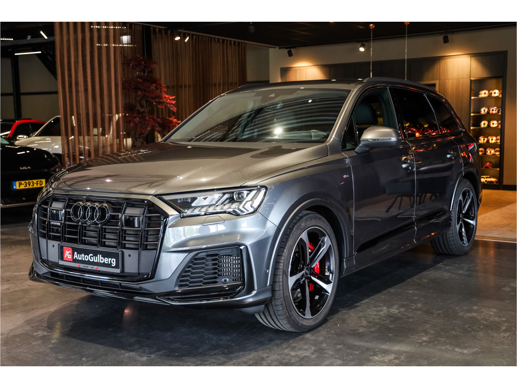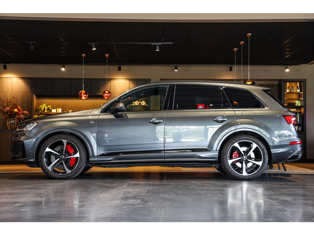 Hele mooie Audi Q7 55 TFSI e Quattro Black Optic in de kleur Daytona grijs metallic met zwart Leder / Alcantara.