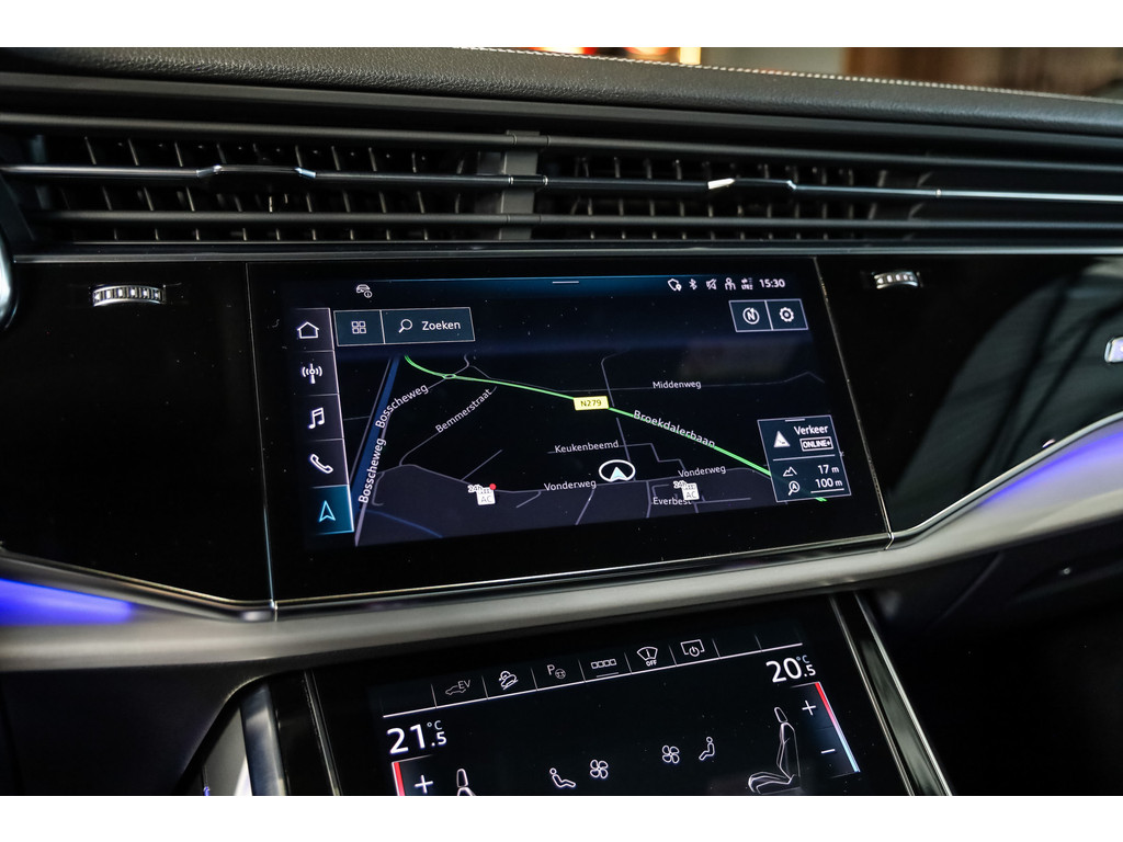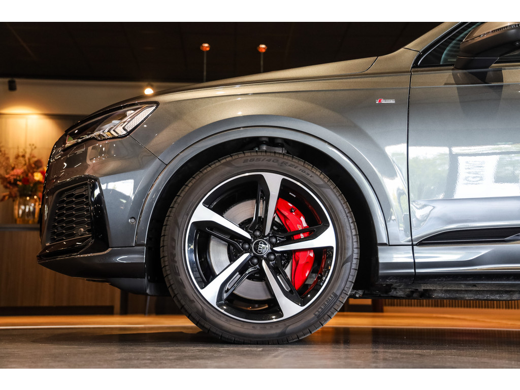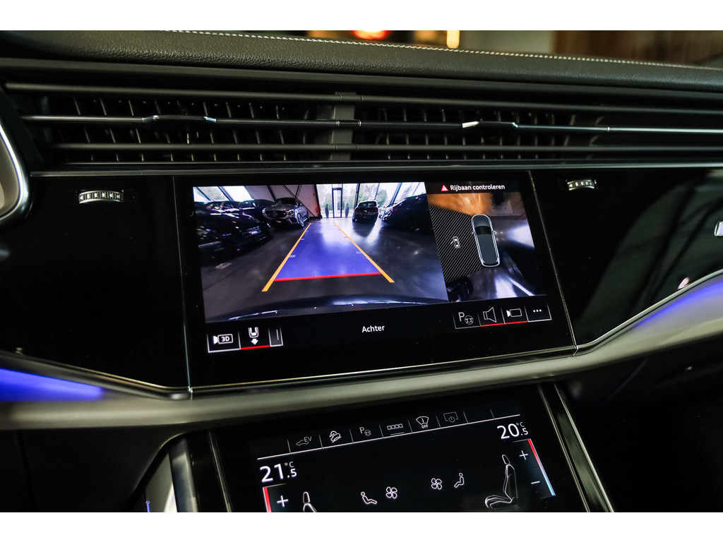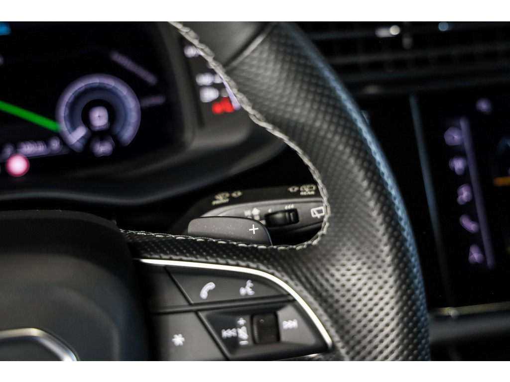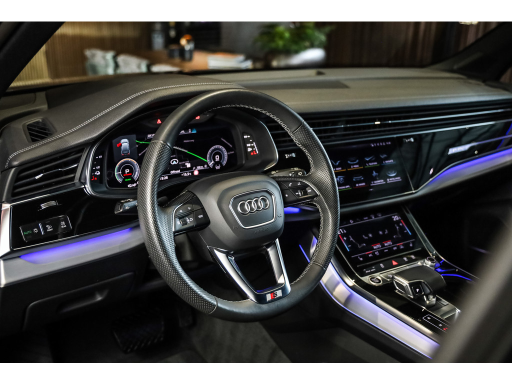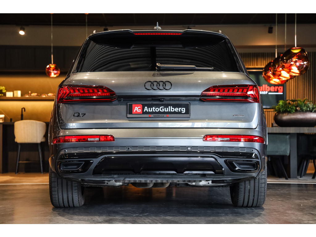 Hele mooie Audi Q7 55 TFSI e Quattro Black Optic in de kleur Daytona grijs metallic met zwart Leder / Alcantara.