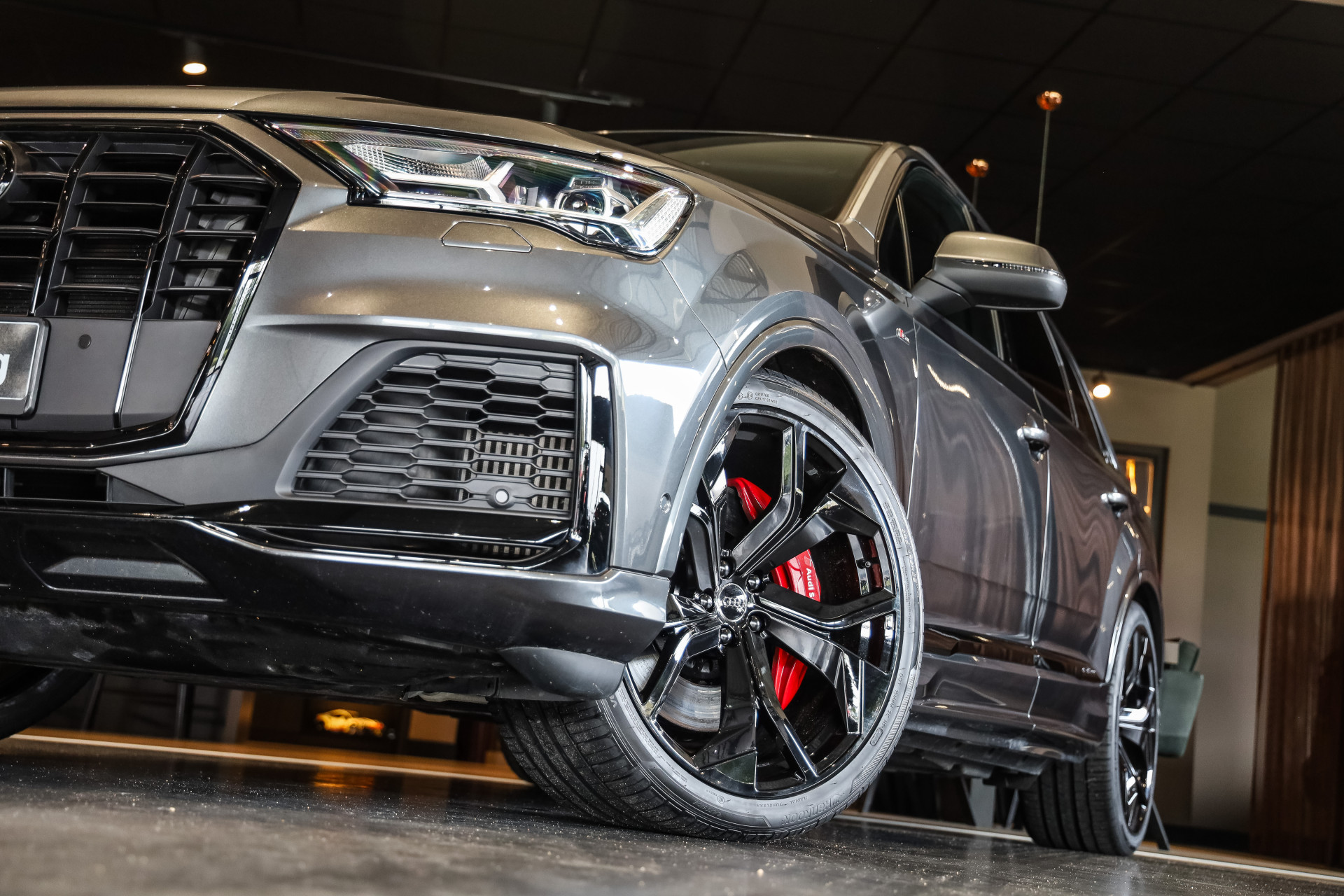 Audi Q7 S-Line Sport Design met slechts 29000km in de kleur Daytona Grijs Pearl met Sportstoelen in leder/ stof.