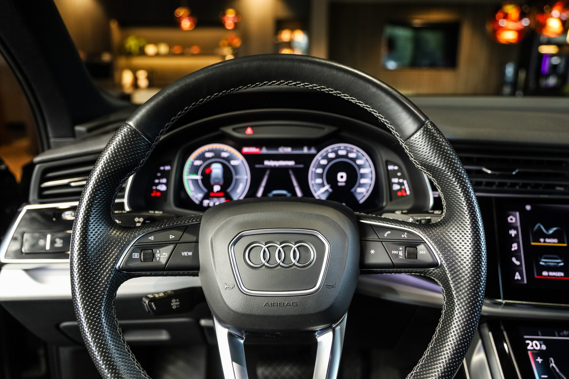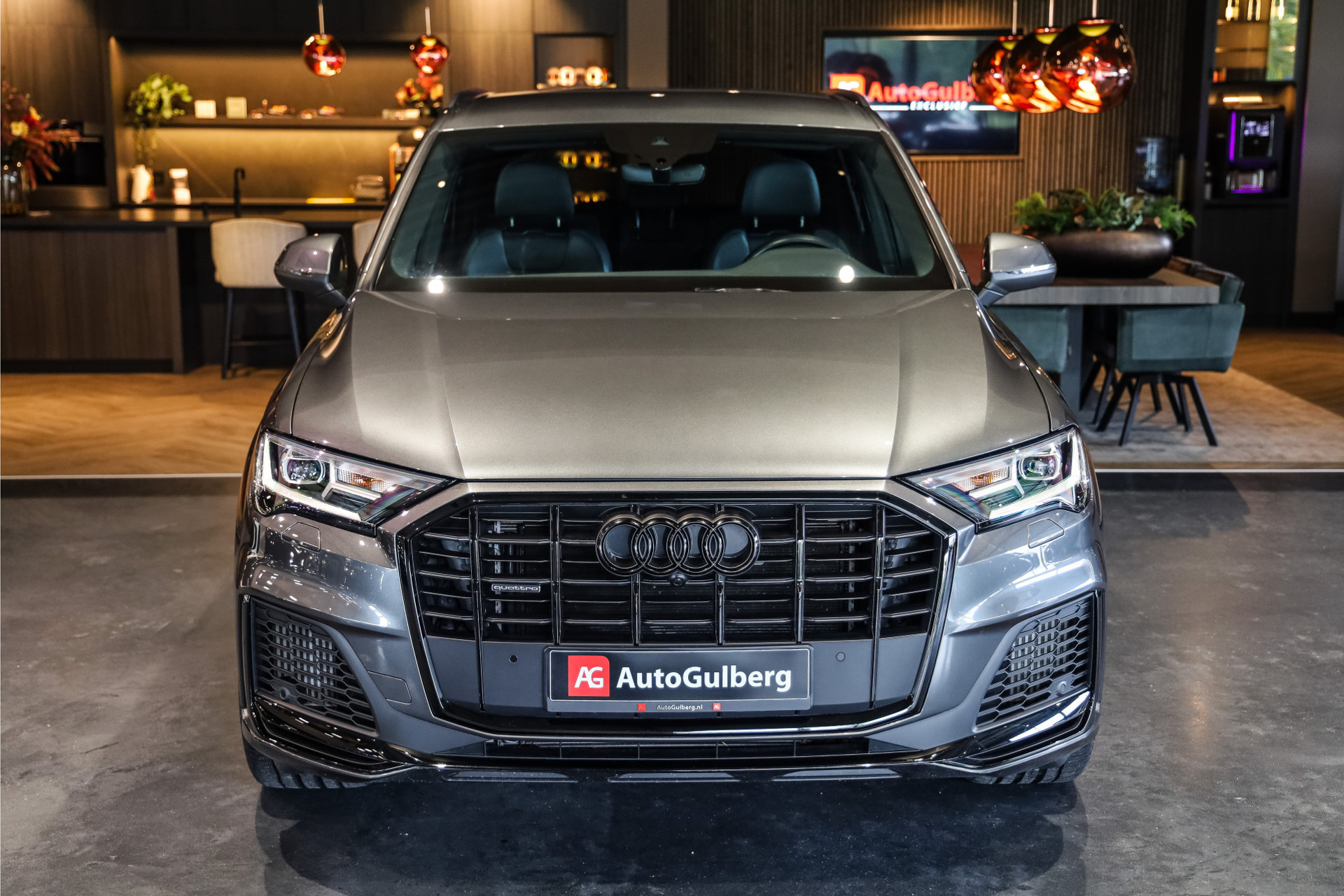 Audi Q7 S-Line Sport Design met slechts 29000km in de kleur Daytona Grijs Pearl met Sportstoelen in leder/ stof.