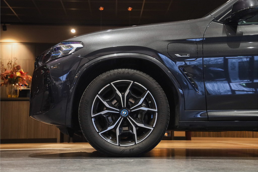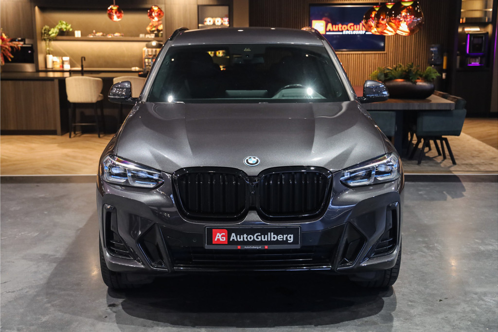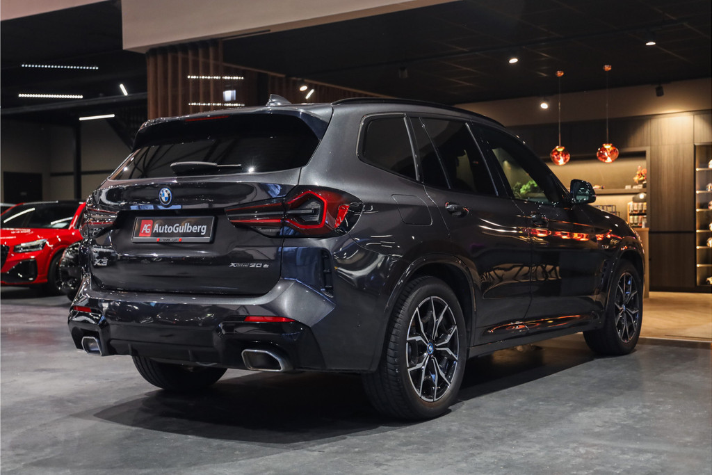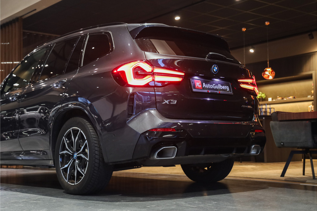 BMW X3 30e M-Sportpakket in de mooie kleur combinatie Sophistograu met zwart leder uitgevoerd in Black Optic accenten.