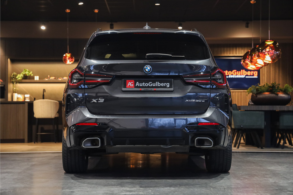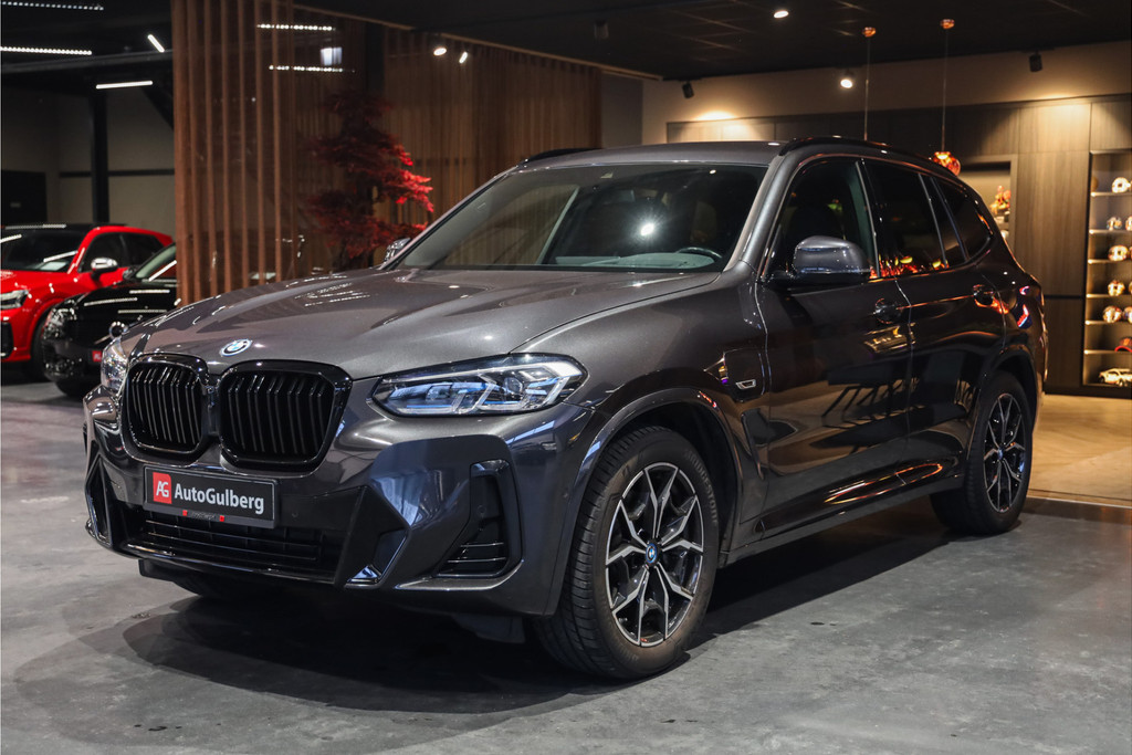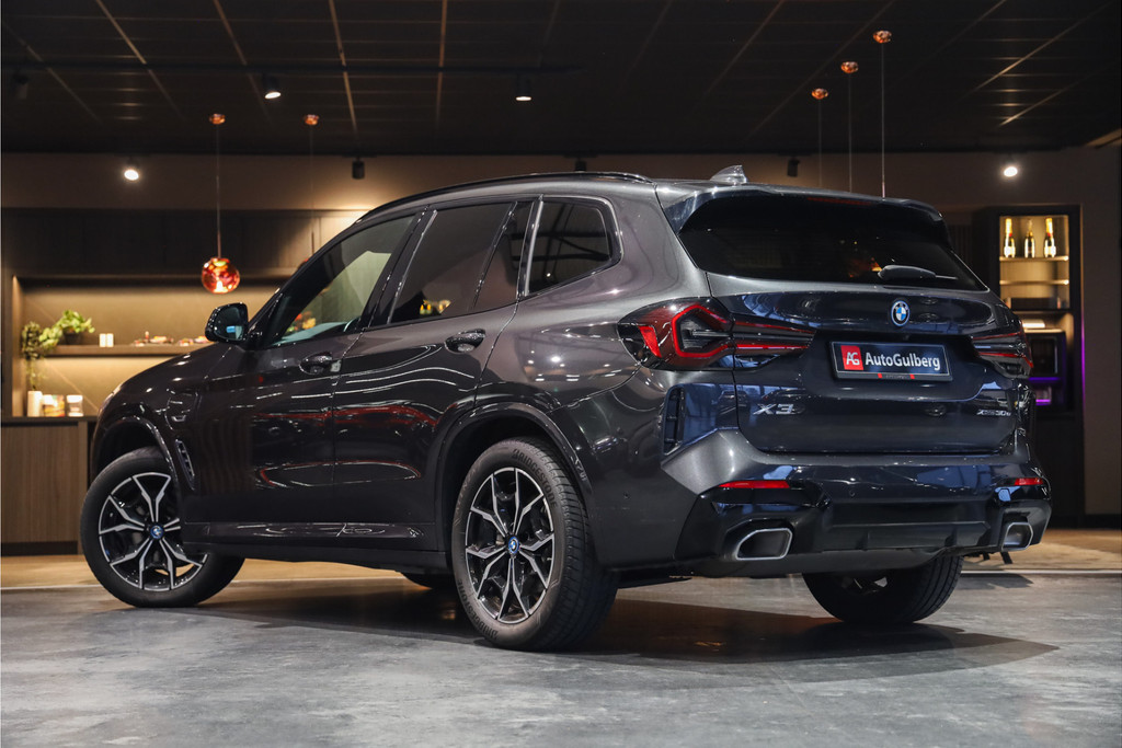 BMW X3 30e M-Sportpakket in de mooie kleur combinatie Sophistograu met zwart leder uitgevoerd in Black Optic accenten.